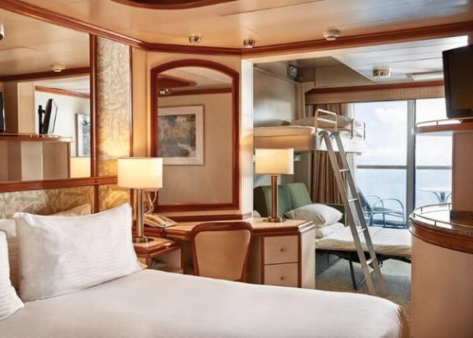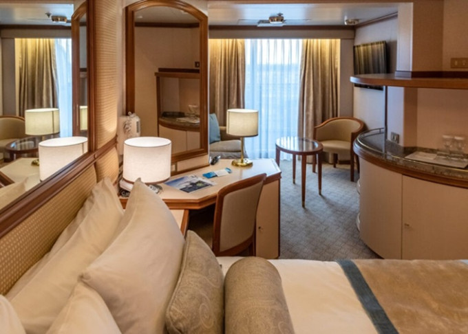 S6 - Vista Suite s balkónom 45 m² (vrátane balkóna). Max 3-4 osoby (gauč + horné lôžko). Výhody Suite. 10 076 € 5 038 € za osobu