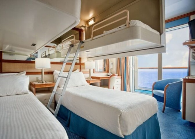 OV - Vonkajšia kajuta / obmedzený výhľad 16,5 m². Neotvárateľné okno s obmedzeným výhľadom. Max 2-4 osoby (2 horné lôžka). 2 666 € 1 333 € za osobu